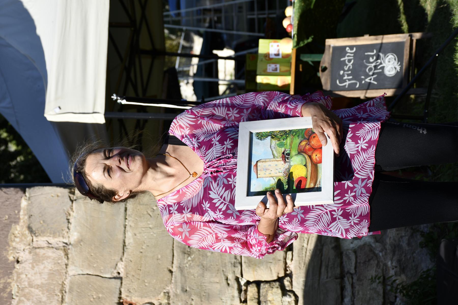 Bis zum Ende der Messe wurden durch die unermüdlichen Pomologen etwa 70 verschiedene Obstsorten bestimmt. Der Bedarf an pomologischer Kenntnis und Erfahrung ist nach wie vor immens. An der Publikumsverkostung nahmen 63 Besucher teil. Verkostet wurden drei Apfelsäfte und drei Apfelweine bzw. Cider. Steffi Krieger aus Alkersleben erhielt für ihren Apfelsaft vom Publikum die beste Bewertung. Sie durfte sich über ein Gemälde des Reinstädter Malers Gerd Klapetz freuen. Die Glücksfee Greta zog aus der Gruppe aller Verkostungsteilnehmer den Teilnehmerpreis. Michael Schaal aus Drößnitz durfte sich einen Saft oder Wein seiner Wahl auf der Messe aussuchen. Kinder und Interessierte begeisterte der Handhäcksler und die kleine Korbpresse. So konnten sie Saft aus Äpfeln selbst herstellen. Die Streuobstmesseveranstalter begrüßten sehr erfreut das interessierte Fachpublikum weit über den Ostthüringer Raum hinaus. Es kamen Interessenten aus dem Eichsfeld, aus Mittelthüringen und dem Südharz. Am weitesten, aus Düsseldorf, angereist war ein Anbieter einer Ketten-Schneidebühne. Für die heitere musikalische Begleitung sorgten der Liedermacher Dieter Arnold Beckert aus Dresden, der Foxy-Chor aus Weimar und spontan auch Gäste der Streuobstmesse. Viele Besucher haben die Streuobstmesse in Reinstädt als einen besonderen Tag erlebt. Die Kombination aus einer großen Produktvielfalt, aus dem Angebot von Geräten, Maschinen und Ausstattung, einem schönen Begegnungsort, aus Atmosphäre, fachlicher Anregung und dem Austausch mit gleichermaßen interessierten Menschen trug dazu bei. Wir danken den vielen Helfern vor Ort, die so eine anspruchsvolle Veranstaltung erst ermöglicht haben!
